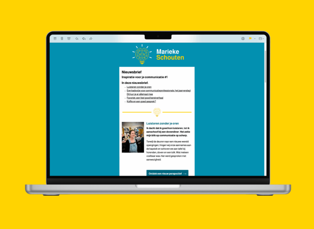 Dat betekent dat niemand buiten blijft staan. Dat blinde lezers je nieuwsbrief kunnen beluisteren via hun eigen spraaksoftware. Dat iemand met motorische uitdagingen niet hoeft te mikken op een minuscuul knopje, maar met één simpele tab-toets door je tekst navigeert. Of dat mensen met kleurenblindheid niet verdwalen door contrast-arme knopjes.